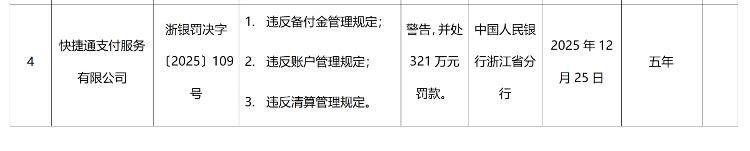 海报新闻记者赵恩近日报道,中国人民银行浙江省分行发布行政处罚信息显示,奎通支付服务有限公司因多项违法行为受到警告、罚款321万元,两名相关责任人被罚款。根据制裁信息,公司特有的违法行为包括: 违反账户管理规则。违反结算管理规定。制裁信息披露期限为五年。来源:中国人民银行浙江省分行 同时,沉先生因违反奎通支付服务有限公司账户管理规定负有责任,受到警告并处以8万元罚款。严某因违反储备金管理规定,受到警告并处罚款8万元。资料来源:中国人民银行浙江省分行。天眼查表示,奎通支付S服务有限公司前身为浙江奎通网络科技有限公司。公司成立于2012年,位于浙江省杭州市。主要提供专业技术服务的公司。 2022年6月,公司获中国人民银行批准变更现址,正式加入浙江中国小商品城集团股份有限公司(股票代码600415)。 2022年9月起,中文品牌“Yiwu Pay”和英文品牌“Yiwu Pay”将正式启动。据浙江中国小商品城集团有限公司2024年年报显示,支付宝通过互联网支付技术为商户提供便捷、安全的电子支付解决方案。业务涵盖线上线下B2B支付、传统支付等多种场景。跨境支付业务方面,我们为客户提供全球收付等综合跨境金融服务。为进出口企业提供外汇管理等服务,并通过跨境支付手续费获得收入。据公司网站介绍,义乌支付目前已发展400家各大银行,并与中国商品平台、银联云闪付等渠道建立合作关系。通过互联网支付服务、跨境人民币服务、人民币数字服务等,帮助商家及相关企业降低成本、提高效率、保障资金安全。我们支持创建满足市场安全和合规性的安全商业环境。